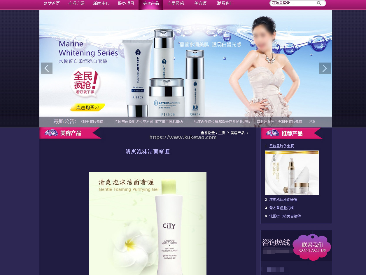 美容产品网站模板,化妆品 面膜网站源码