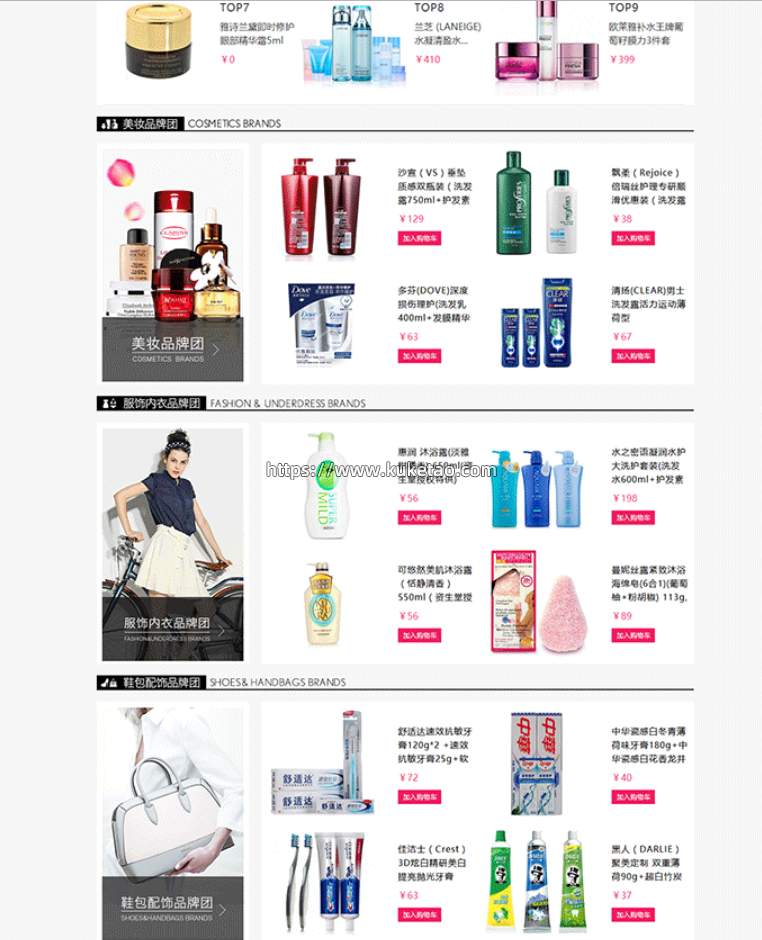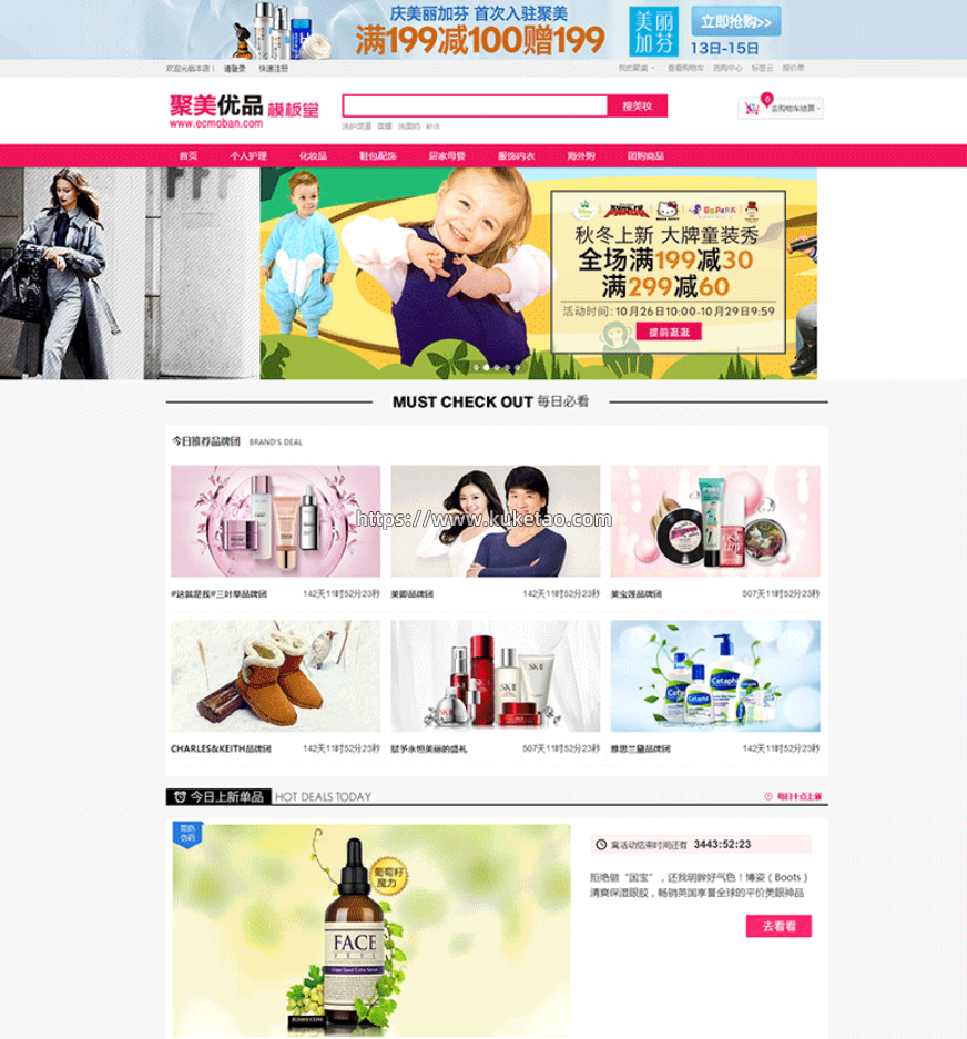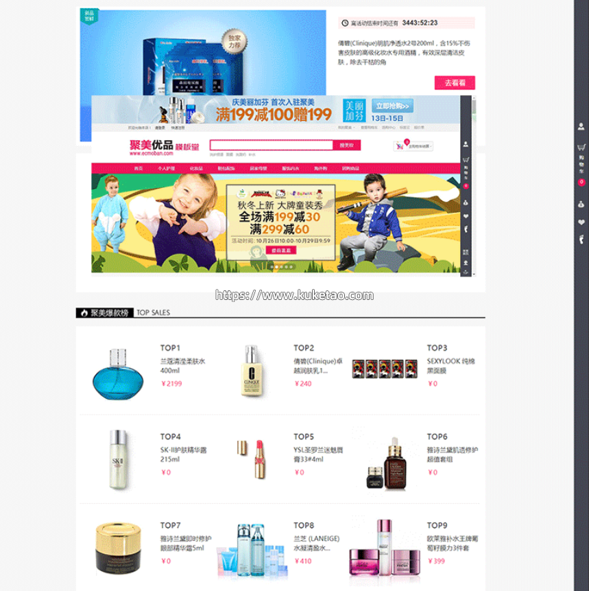 ECSHOP聚美优品旗舰模板 整站宽屏 化妆护肤品 服装微信商城