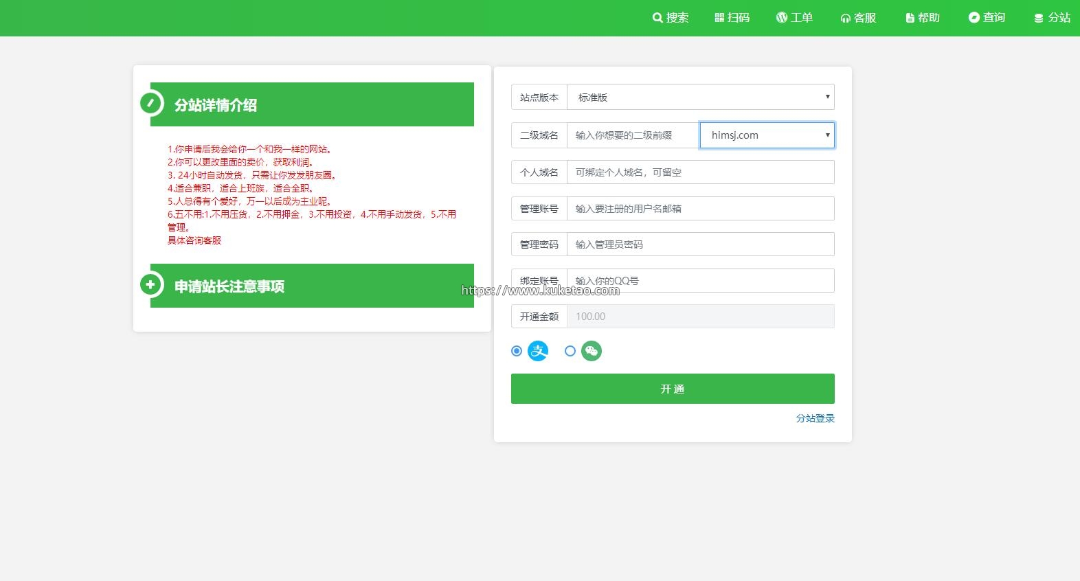 ★支持顾客在用户中心自助申请代理,可设置缴费和免费。