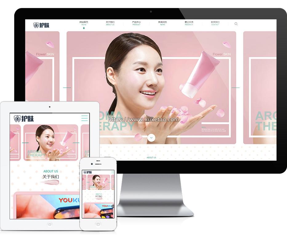 响应式护肤美容化妆品类网站模板源码带手机版另接网站制作设计