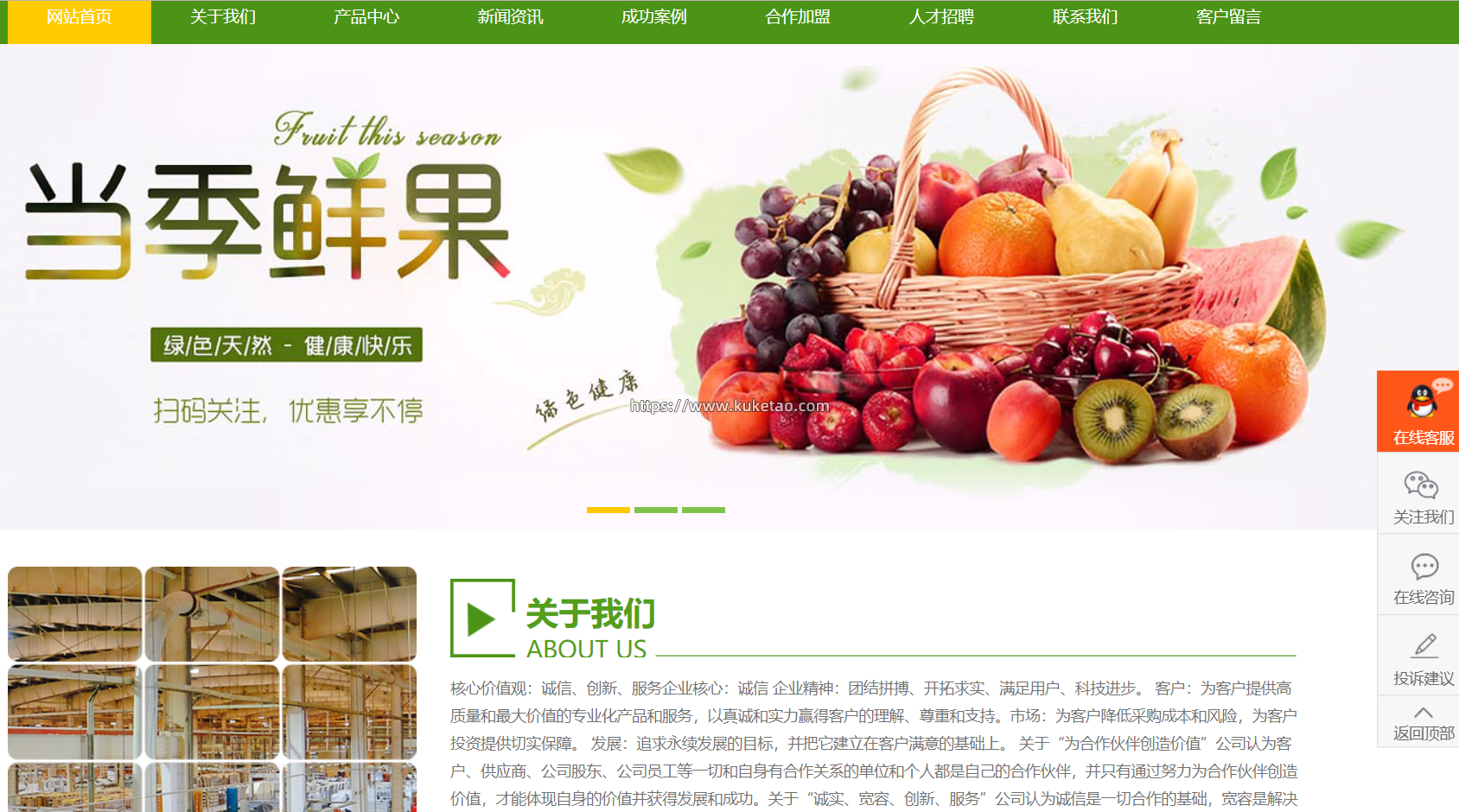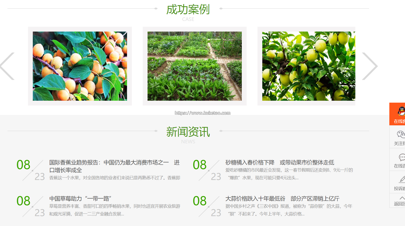 水果蔬菜种植园网站模板源码带手机版另接网站制作设计一条龙