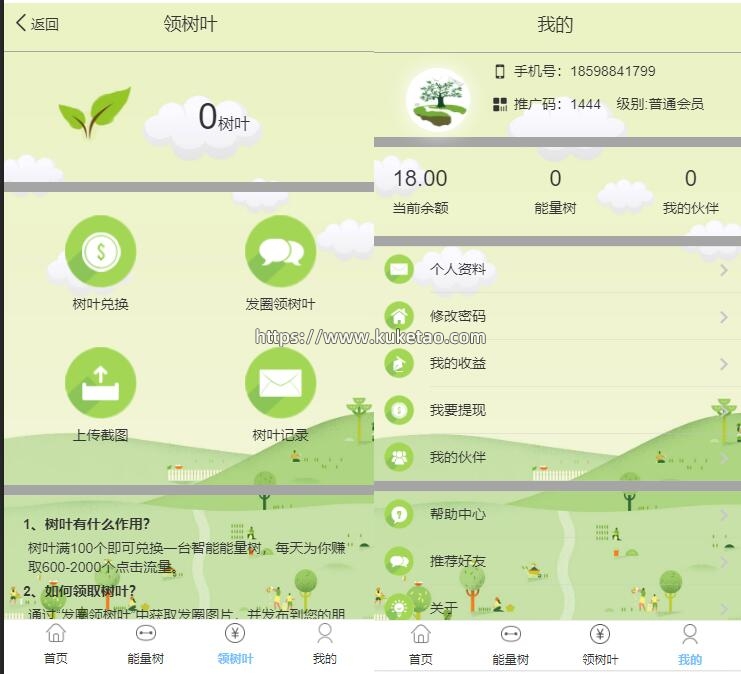 树叶满100个即可兑换一台智能能量树,每天为你赚取600-2000个点击流量。