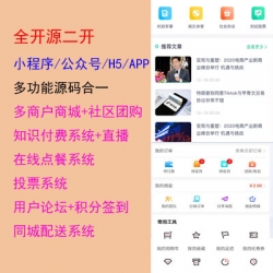 多个源码二开合一!!包含:多商户商城/社区团购/外卖点餐/在线客服/知识付费/投票 。。。等等!!!