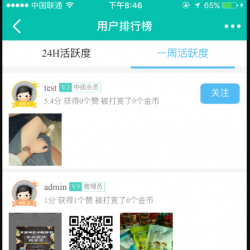 适配小云APP 马甲APP,可统计每天和每周时间段内用户被打赏(即论坛评分)和点赞(即帖子支持)的次数,并根据插件后台自定义的规则统计排名。