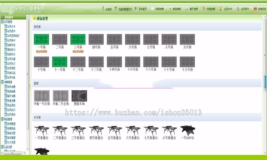 消费管理:球场消费 商品销售 餐厅消费 快速消费 现金退货 会员扣次 会员退货
