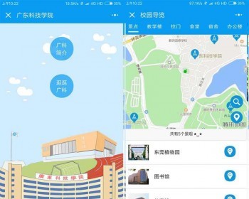 蓝色的手机微信大学校园介绍,学校地图导航小程序通用模板。包含:学校主页、教学楼地图、学校简介等功能。