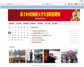 前台:网站首页 公告信息 浏览兼职信息 新闻资讯 留言模块 用户注册