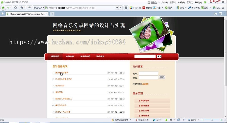 主页: 系统首页 在线注册 音乐排行榜 我的信息 音乐分类