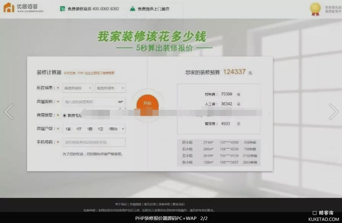 前台业主装修预算计算 ,系统自动收集业主信息并可以直接发送到指定邮箱,PHP源装修预算表源码解决装修到底需要多少钱