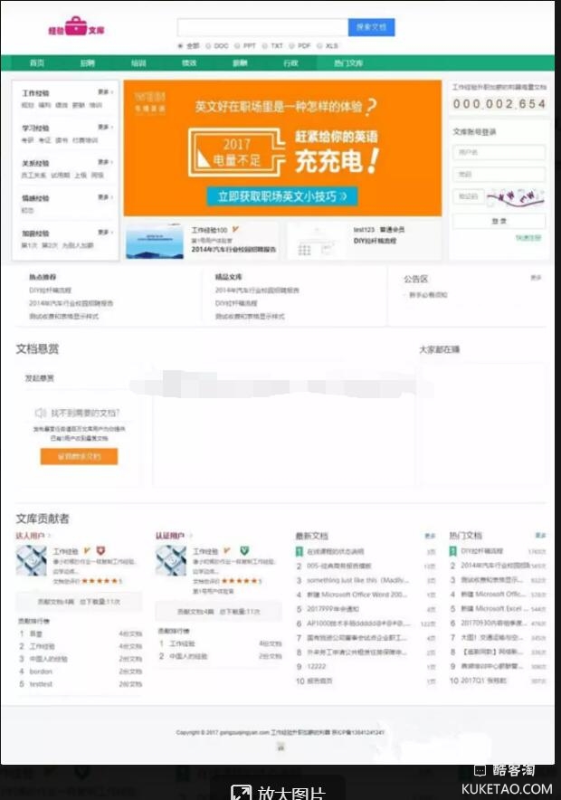 相信百度文库大家一定都是用过,在百度文库可以搜索我们需要的文档,然后进行在线阅读或者下载,当然,类似这样的网站除了百度文库还有很多,比如道客巴巴等等。今天给大家分享的是一款基于ThinkPHP5框架开发的仿百度文库在线文档系统源码,前台界面主要是模仿百度文库的模板,大家通过后面的截图可以一目了然能看出来,后台主要是采用国内和成熟的ThinkPHP5作为底层框架,然后结合Layui前端框架搭建。该在线文档系统实现的功能基本与百度文库类似,可以在线阅读文档、下载文档、免费下载文档、财富值下载文档、文档分类、在线充值积分等等,用户可以对自己需求的文档进行悬赏。总的来说跟百度文库功能基本相似。后台集成通用权限管理系统,细分权限的管理者,不同用户采取不同权限控制,该系统集成了支付宝、微信、易宝支付等支付系统接口,用户充值支付手段更加丰富!该系统可扩展服务及插件,极大的方便了开发者扩展系统功能,有需要的可以下载学习,请勿用于商业用途!!
