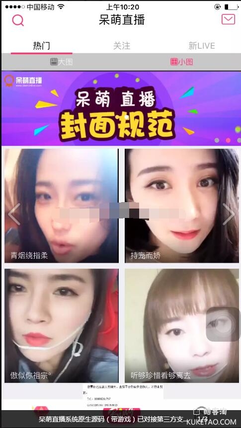 呆萌直播系统源码|直播程序源码|仿映客花椒直播源码广泛应用于: 购物直播 美女秀场直播 教育直播 嵌入式直播 游戏直播 社交直播 o2o直播 众筹路演直播等多领域,提供多行业互动直播应用解决方案