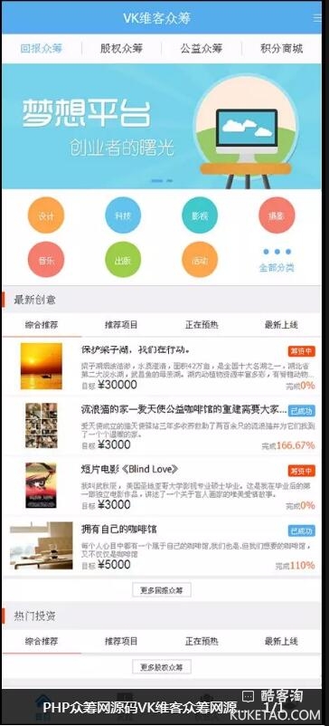PHP众筹网源码VK维客众筹网源码+手机端众筹网站
