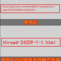 本插件不会跳转和影响只看该作者、倒叙浏览、排序等链接,插件目前支持论坛主题列表页、论坛主题内容页、门户文章页、群组主题列表页,可自定义跳转的伪静态链接格式,帖子链接支持版块参数
