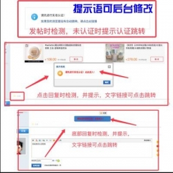 后台支持“开启电脑版回帖框上方提示”功能开关,开启电脑版回帖框上方提示后,会在帖子详情页,底部回帖框上方,显示需要进行认证的提示文字。文字内容,请在下方“电脑版回帖框上方提示文字”设置。