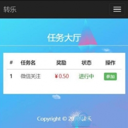 新增任务大厅,网站主可以通过后台发布悬赏任务。用户参与提交任务可获得相应佣金。