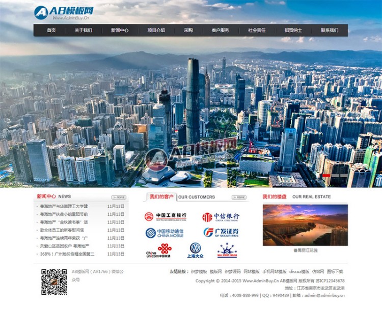 语言编码:UTF-8模板颜色:蓝色、白色适用站点:房地产、展示类
