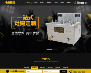 厨房用具用品设备类网站织梦模板 黄黑色厨房电器设备网站带手机版