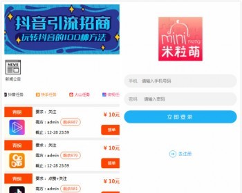 抖音点赞、关注赚钱平台,帮助短视频网红们提高人气,后台发布关注点赞任务,然后会员接单,完成有佣金,不同级别的会员每天接的数量不一样,带三级分佣推广系统
