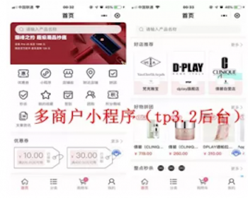 Thinkphp3.2微信小程序多店铺商城商家入驻+秒杀+拼团+促销+三级分销+导航+积分商城源 tp3.2后台送素材黑白图标和安装操作文档