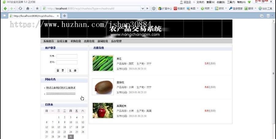 前台:系统首页 在线注册 求购信息浏览 出售信息浏览 新闻信息 公告信息