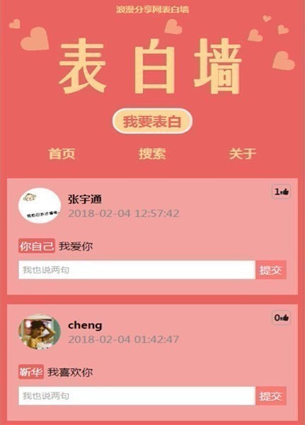 告白:点击“我要表白”按钮,输入邮箱和昵称等信息,可以进行一次告白;