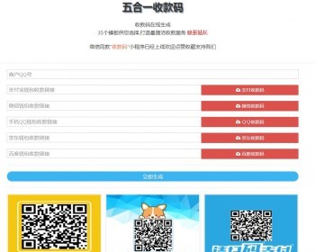 源码说明:支持微信支付,支付宝支付,手机QQ支付,京东钱包,百度钱包,五合一收款,将其二维码合并为一个二维码,无需手续费,支持的qq头像,昵称判断,自带35套模板任您选择,打造最简洁的收款服务!