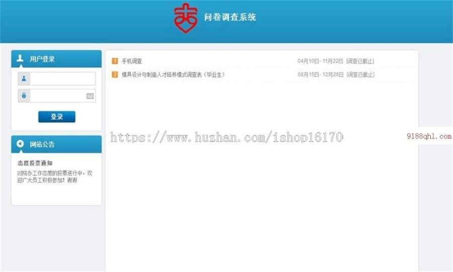 1. 首页上显示问卷项目标题(日期、多少天结束)、公告信息和登录框