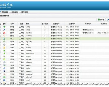 1、菜单导航管理2、操作按钮3、角色管理4、部门管理5、用户管理(用户权限)6、用户组管理(设置成员,用户组权限)7、系统配置(动态配置系统参数)8、附加属性(自定义属性)9、系统日志(异常记录)10、数据库备份/还原11、资源管理,(动态数据库)12、个人信息(基本信息,附加信息,用户角色,拥有权限)13、首页快捷14、数据回收站(业务功能删除过数据,全部保留在回收站)15、系统个性化设置(切换菜单导航)16.兼容 IE6,7,8,9 /Firefox /Google Chrome 这些浏览器都测试过 17.批量删除,自定义复选框样式,可以全选/反选18.角色分级,集团和分公司的关系19.权限 横向就是业务部分,具体负责哪块业务,纵向是级别 特点: UI:传统html css,美观 漂亮 大方 实用 js框架:jquery 系统大部分使用AJAX操作。大大提高了用户体验功能描述: 1.支持N级菜单导航,菜单显示方式支持目前支持2种模式分别: 菜单(),横向(2级) 2.表单验证,文本框高亮起来 3.可以动态分配权限按钮,分配角色权限,目录结构,栏目的链接都可以修改。 4.可以隐藏左侧导航栏,打开左侧导航栏,默认是打开,table表格都自应大小的 5.动态创建数据表,删除用户表,点击数据 表 可以查询字段信息 6.可以直接执行sql脚本