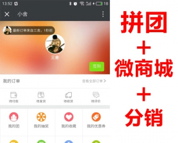 无锁雾加密的正版源码,无后门,无外链内附拼团版、拼团+微商城版+多商户拼团版+昊海微营销版,现在已经发布V6.0版本新版功能如下拼团版是为中小型商户开发的微信拼团系统,这套系统是将拼团功能作为独立的购物商城,具有购物模式鲜明,易吸粉易传播,体验流畅等特点。只要你具备服务号开通微支付购买这套源码后马上开始经营,就能快速的裂变传播拥有大量粉丝及订单