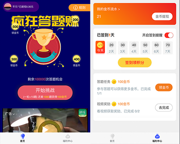 任务机制:根据答题次数奖励、根据要求新用户奖励、观看视频获得奖励