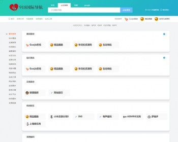 国际导航模板说明:搜索栏背景是动态型的,为了简洁本站没有搜索框以及文章页,只有首页一个,这样可以满足大部分人的需求了,毕竟大家只是大家导航而已,文章啥的也不需要。