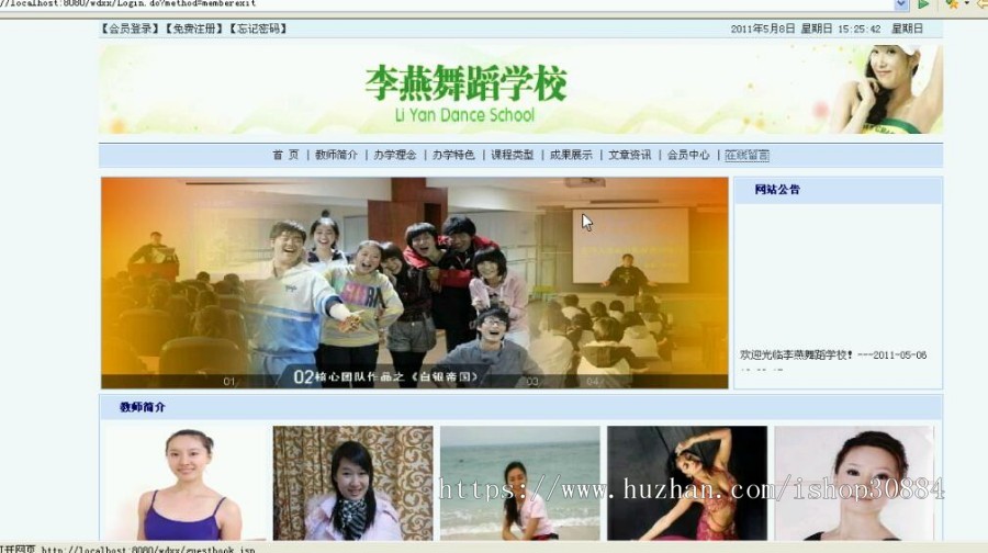 前台:首 页 教师简介 办学理念 办学特色 课程类型 成果展示 文章资讯 公告 会员中心 在线留言