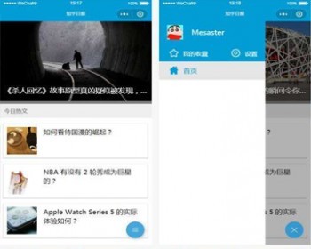 蓝色通用的知乎日报,新闻日报,新闻资讯类小程序网页模板。包含:主页、资讯详情、评论、设置、收藏等。