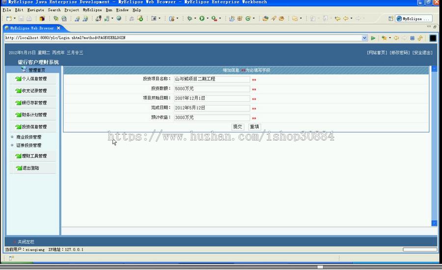 投资信息管理(1商业投资管理 ,2证券投资管理) 填加,查询,修改,删除