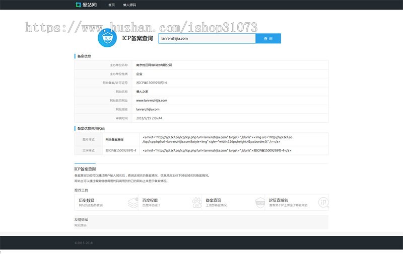 PHP仿爱站网站ICP备案查询源码,ICP直接接口无验证码输入 接口都自动查询 无后台上传即用
