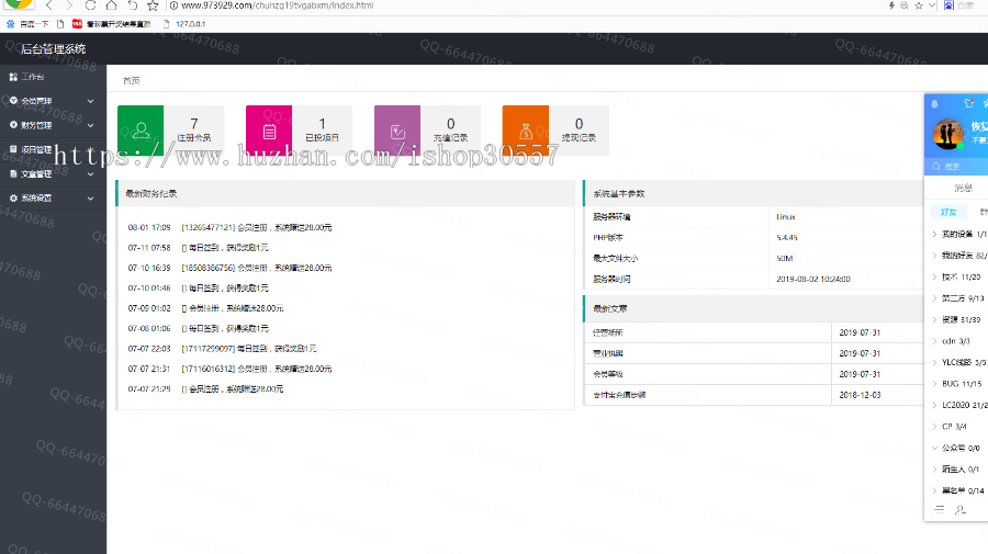 | 4、更多功能可以查看演示站或者咨询qq客服:798606123 | |