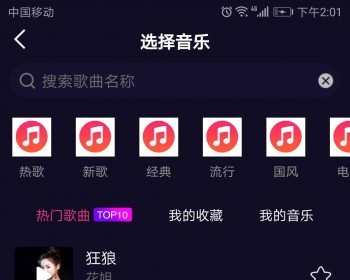 4.自定义音乐:在录制短视频内容前,可添加自定义音乐内容,支持接入原创音乐