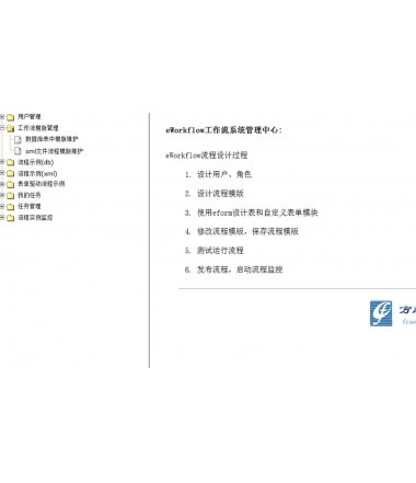 4. 打开IE运行,登陆eworkflow的管理中心,在这里可以设计流程,设计自定义表单,运行流程实例,管理和监控流程。