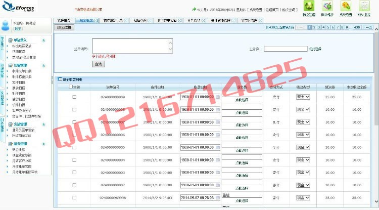 扫描:收件交单扫描,收件称重扫描,发件扫描,到件扫描, 派件扫描,留仓件、问题件扫描,转代理件扫描,代理发件扫描,无线把枪数据上传