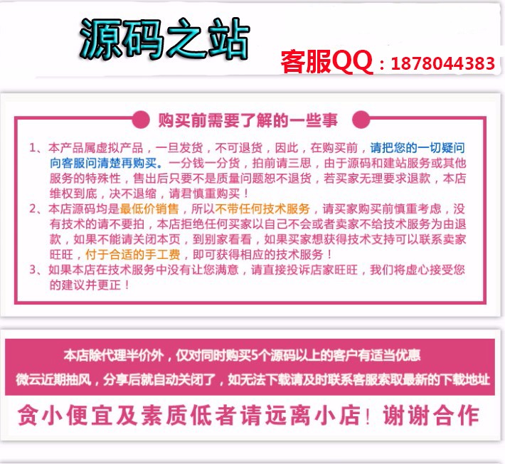 1、源码默认交易周期:2天,请买家在这个期间测试商品以免交易自动确认时间避免损失财产;