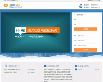 创优汇HI系统9.0自动赚钱营销系统全新的模板设计,更为人性化的 功能衔接,hi系统9.0比以往 版本 功能更加强悍,整合了资源,结合了商城类型模式,可以单个销售产品,也可以批量销售,不仅可以销售虚拟类、还可以销售实物产品及点卡!环境:php5.2 + MySQL + zend