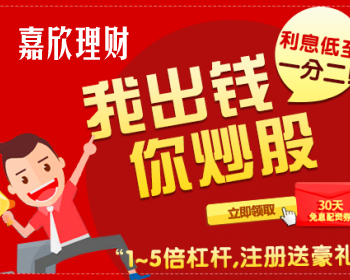 嘉欣投资理财股票配资平台致力于为广大有配资需求的股民提供更安全、低息、便捷的线上股票配资服务。股票配资公司所拥有的资源就是股民成功炒股的前提,某某配资公司拥有前沿配资优势,公司可配金额从2000元起,1000万元,而且无需抵押和担保,只定期收取一定限额的管理费,账单分明,绝不存在隐形费用。