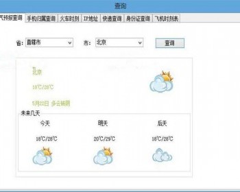功能介绍: 包括了QQ在线查询,天气预报查询,手机归属查询,火车时刻,IP地址,快递查询 ,身份证查询,飞机时刻查询的功能,