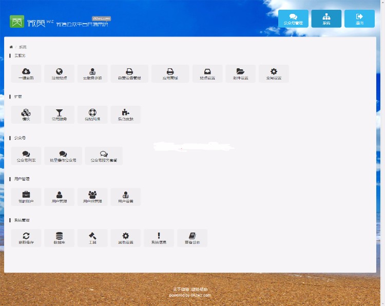 微赞WZ微信公众平台开源程序-是微动力程序的衍生强化版,实现多微站,多客户转接,多功能群发,粉丝会员积分统一,模块嫁接等功能,具有高度的安全特性!开源,程序可自由控制!便于二次开发的开源微信公众平台管理系统!多用户微信公众平台管理系统可简单的实现管理员与各个用户间的授权与管理!已强化了功能模块的管理与应用,方便微信功能独立开发。