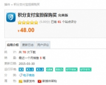 注意!! 注意!! 现在支付宝已关闭双功能接口交易类型,现已无法在申请,应广大站长的要求,现推出支持担保交易购买积分插件
